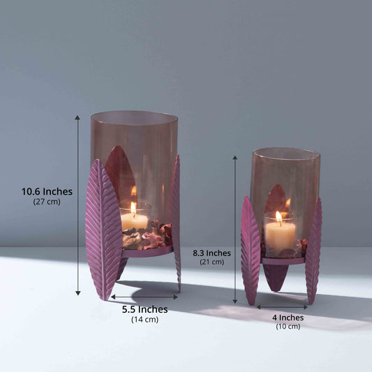 Heather-Toned Iron Candle Stand with Leaf Motif