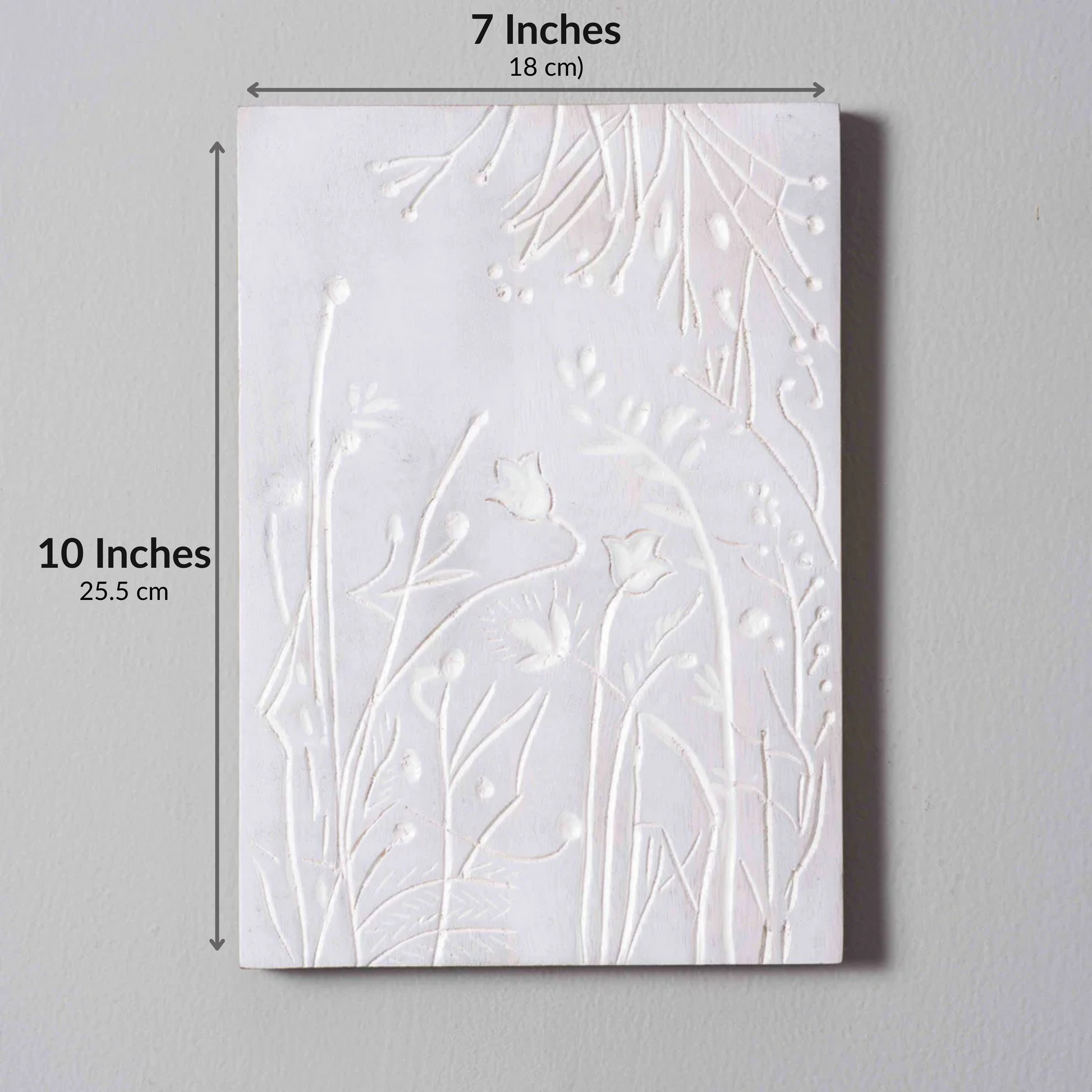 beauty of a winter wonderland. The hand carved motifs, rendered in soft, muted tones, create a calming and tranquil atmosphere.